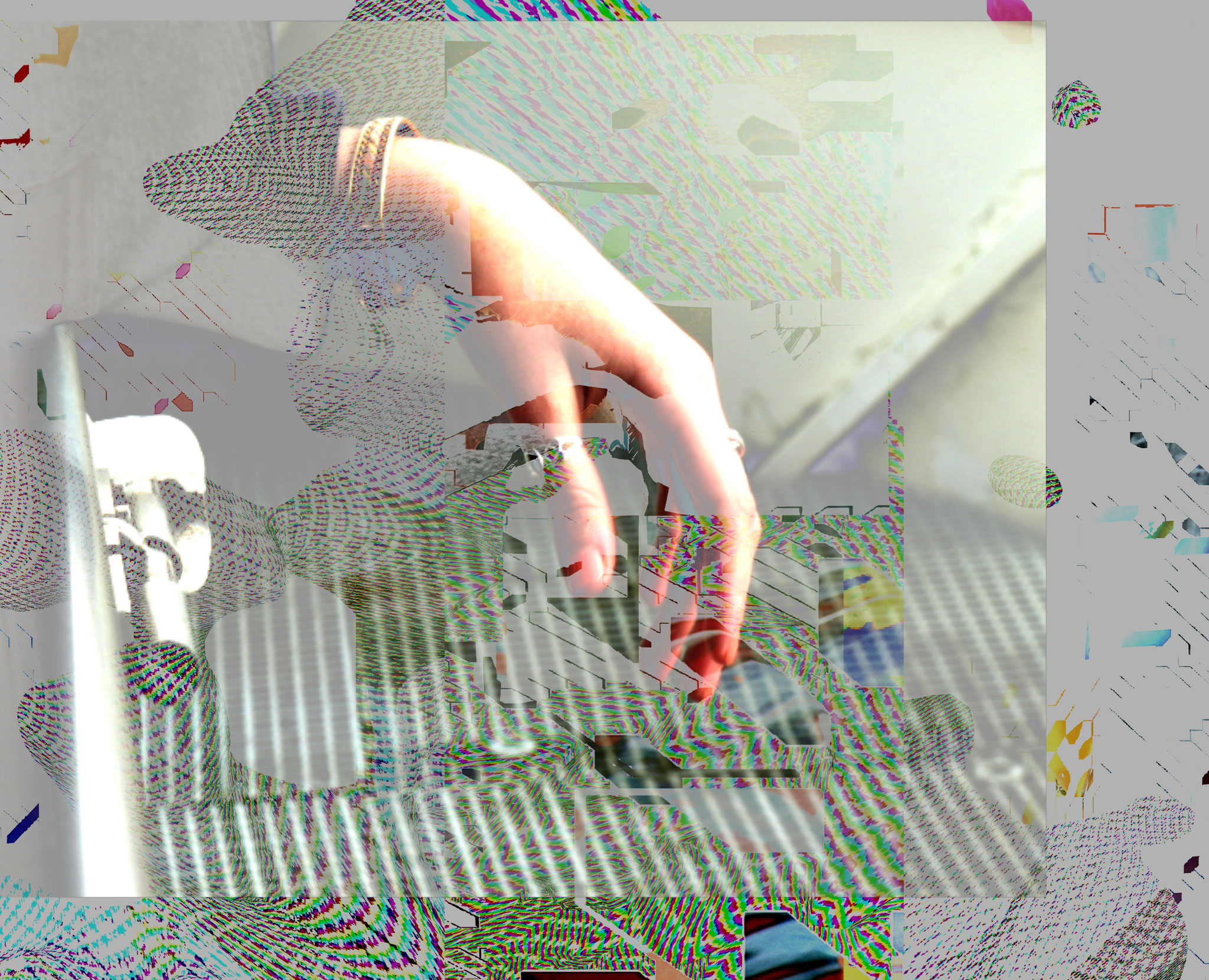 aléatoires et imprévisibles. Le smartphone, lorsqu'il a du mal à encoder, produit des interférences, des moires et des irisations (travaux 2024). Le logiciel d'images, quant à lui, produit des