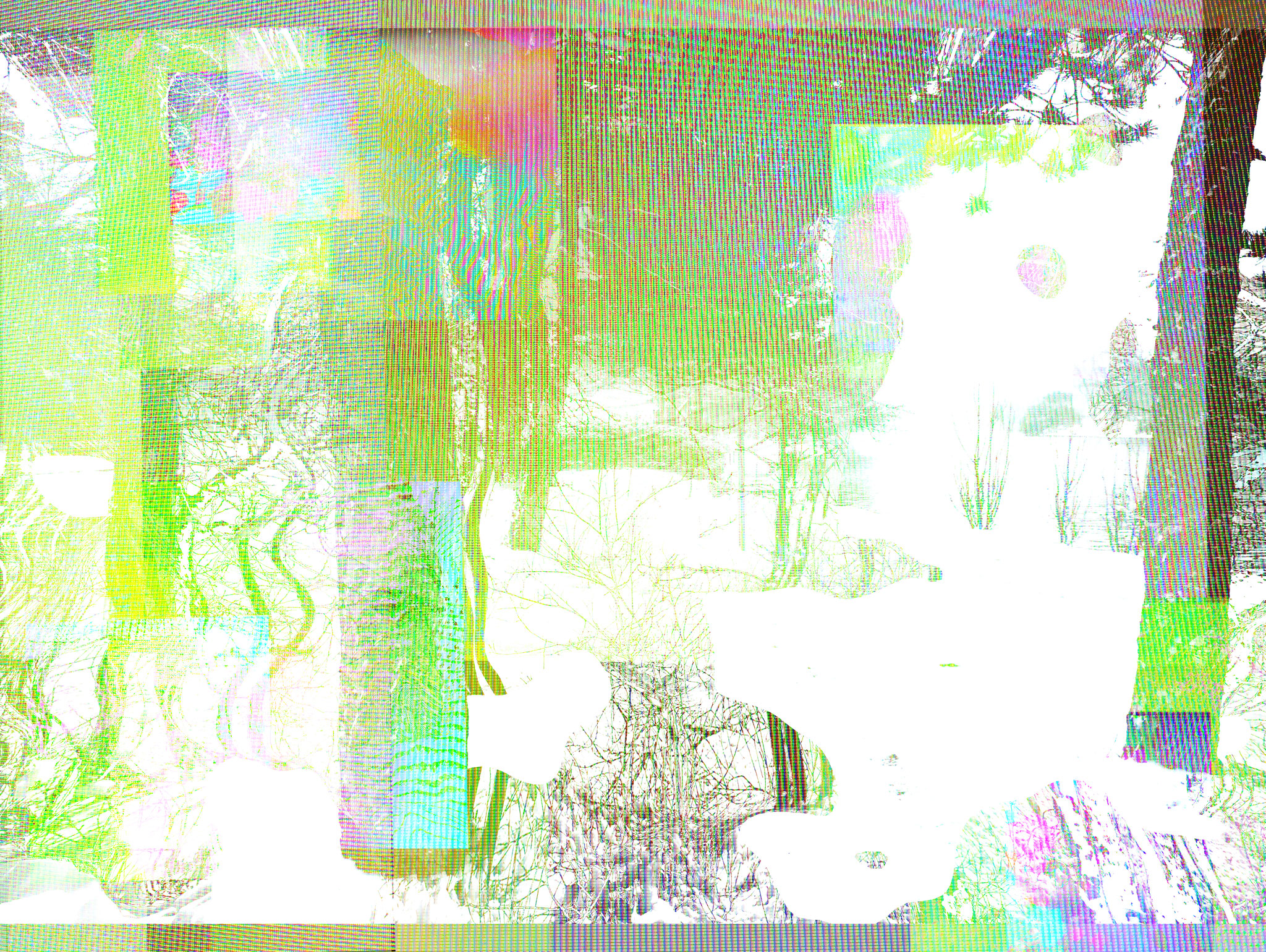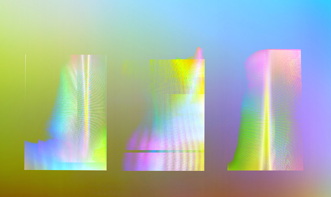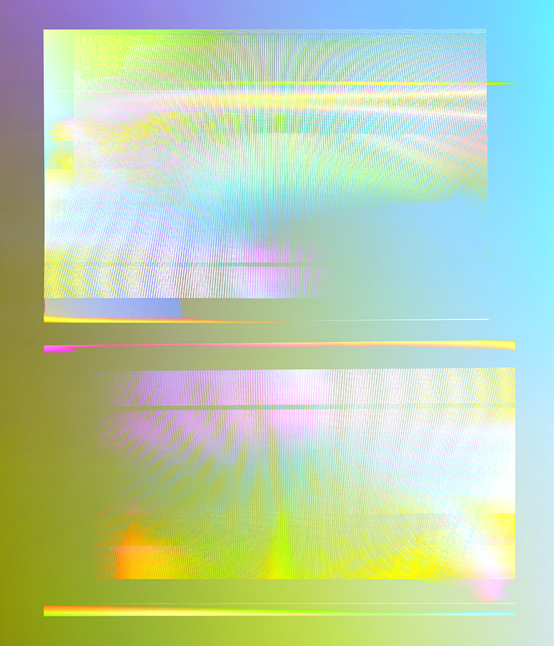 artefacts, des grilles et des pseudo-pixels (2022-2023). Ces phénomènes visuels collectés constituent les éléments de langage pour composer mes photos abstraites ou